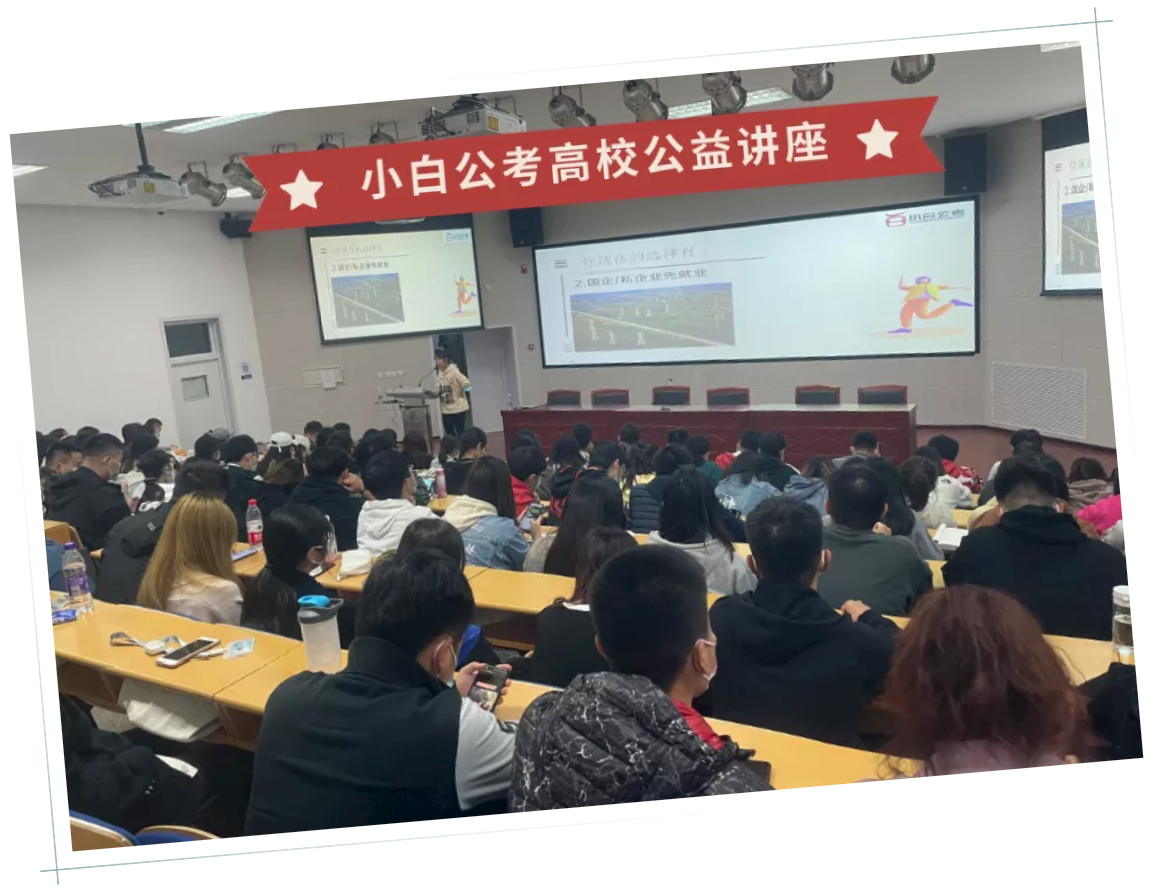 近期,北京小白考事科技有限公司(简称:小白公考)应北京物资学院邀请,举办《“赢”面而战》系列讲座+测评,讲座由小白公考副......